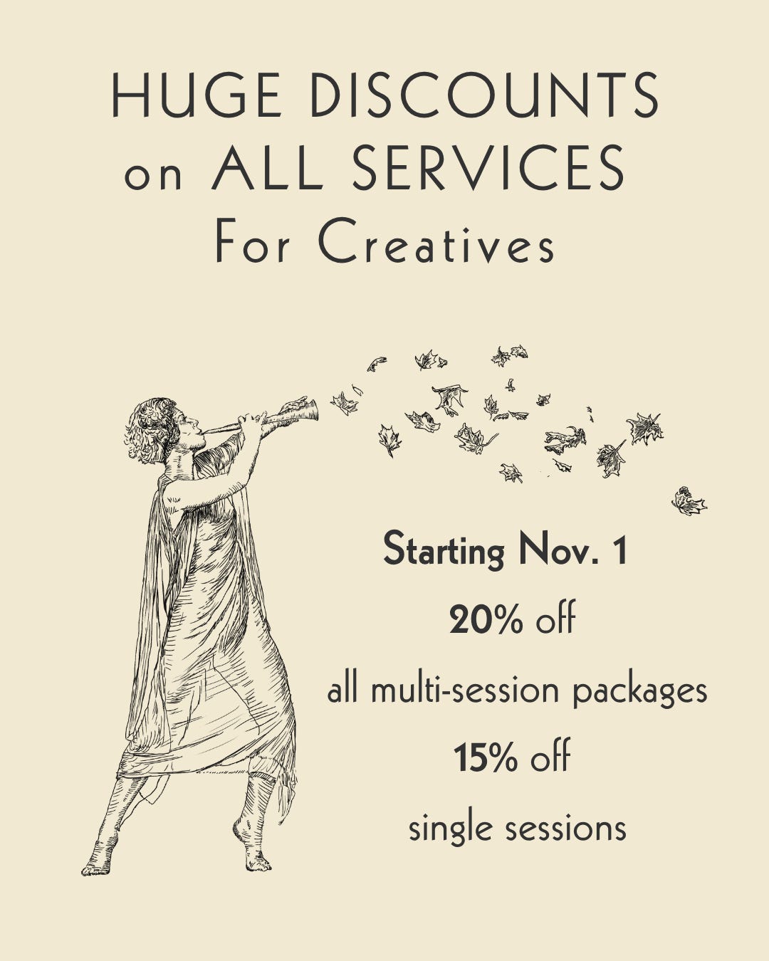 Keep my services in mind this holiday season. All my coaching packages are available as gift certificates. It’s a unique, meaningful, and deeply supportive alternative to traditional holiday gifts. I often enjoy giving gifts like these to others because I find it difficult to invest in my own wellbeing most of the time. It’s much easier to put someone else’s wellbeing before your own, so help a friend or family member out and give them an opportunity to connect with themselves in a sustainable, joyful way.
